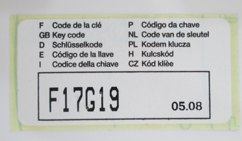 Diesen finden Sie auf einem Aufkleber in der Verpackung des Schlosses, (siehe Bild).
